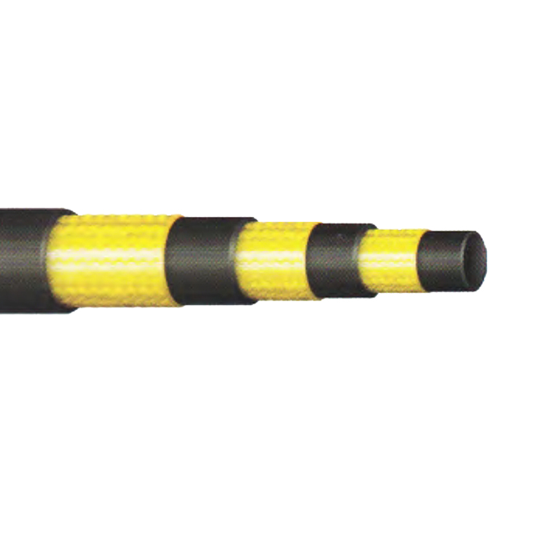 The rubber hose consists of oil-resistant inner layer, three layers of high-strength steel wire braided reinforcement and weather resistant outer layer.