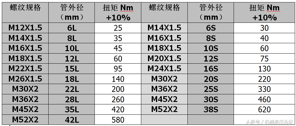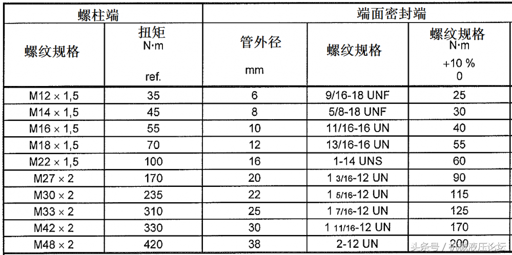液壓接頭擰緊力矩標準(液壓管接頭擰緊扭矩匯總?)