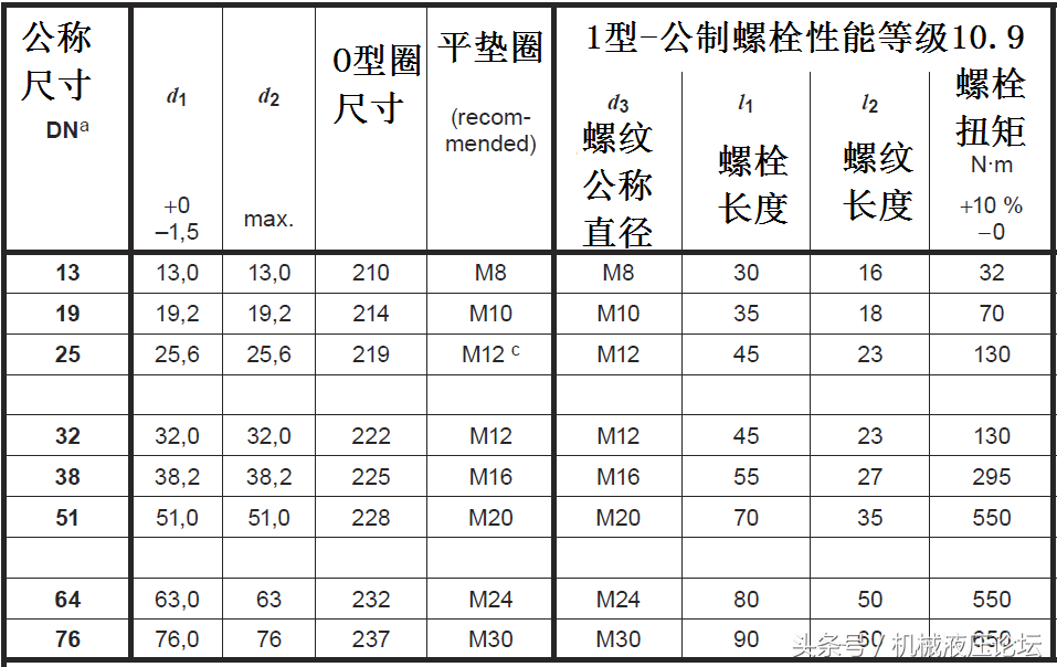 O型圈密封管接頭擰緊扭矩表