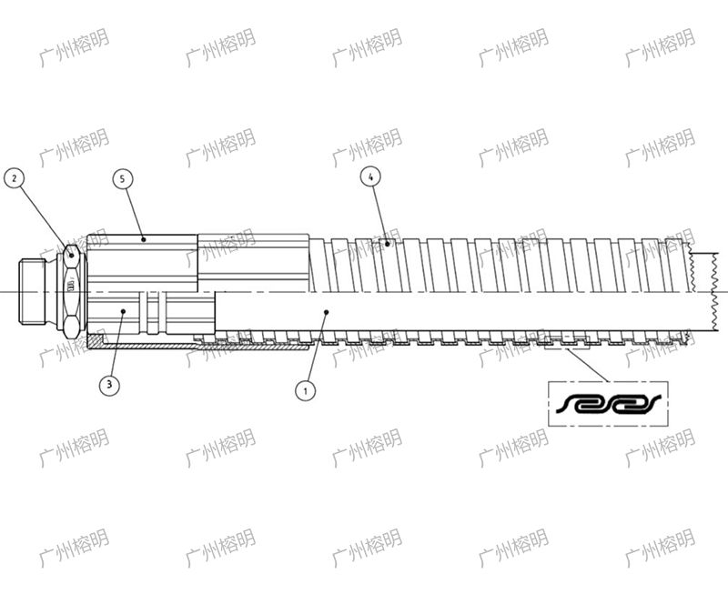 1.液壓欽管;2.MF2000液壓接頭芯,尾部安裝O型圈僅限于內(nèi)鎖增強(qiáng)式(IP)接頭方案;3.MF2000液壓套簡;4.外部柔性金屬鎧甲(內(nèi)鎖式柔性金屬軟管);