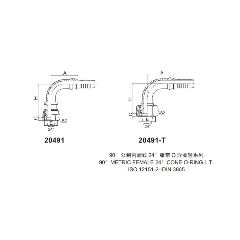 永華標(biāo)準(zhǔn)扣壓式接頭 20491和20491-T 90公制內(nèi)螺紋 24 錐帶O形圈輕系列90 METRIC FEMALE 24 CONE O-RING L.T.